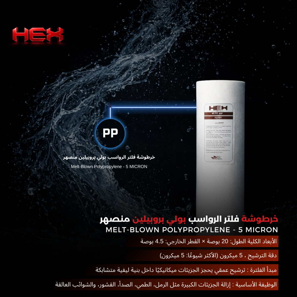 - اسم المنتج : خرطوشة فلتر بولي بروبيلين منصهر (PP) 5 ميكرون