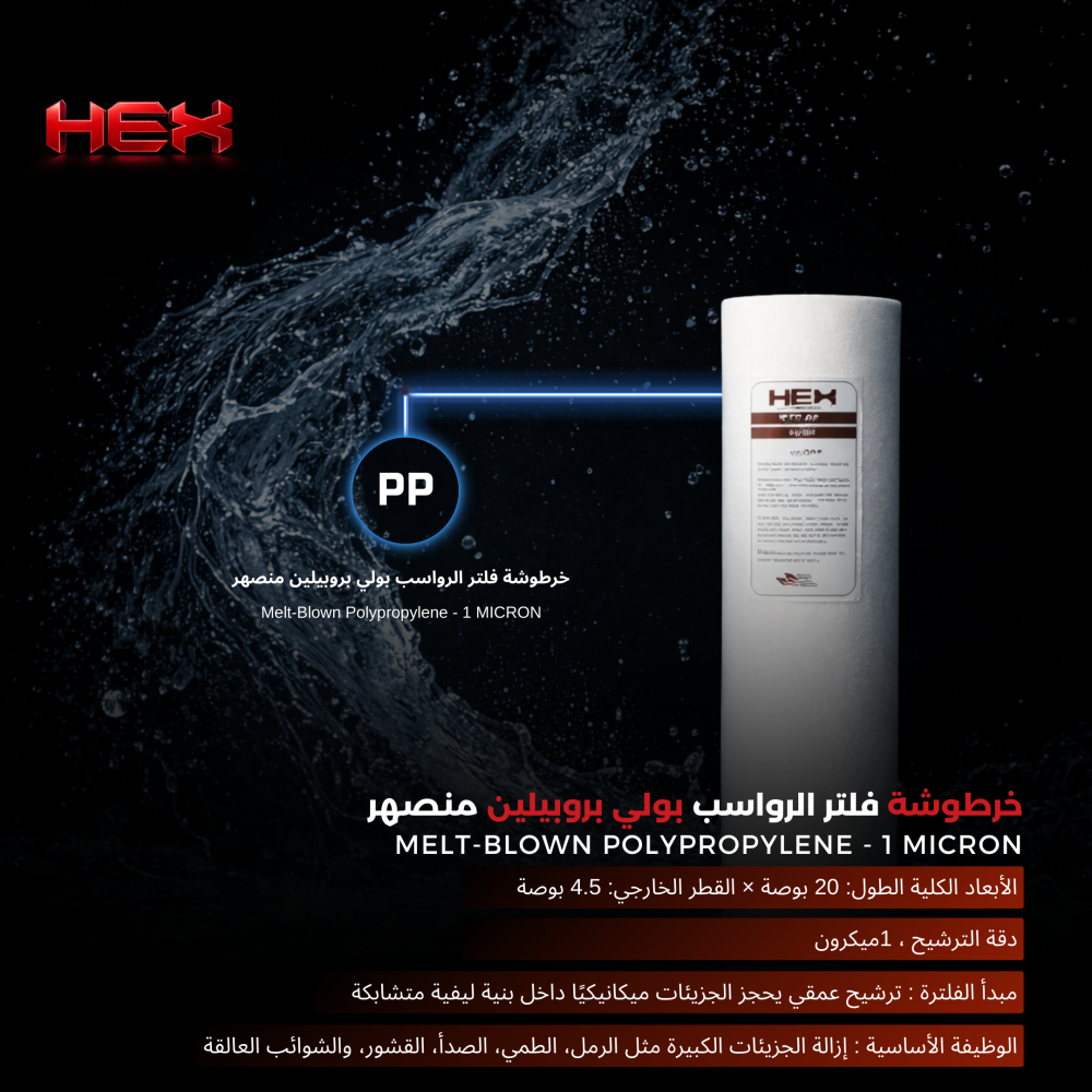 - اسم المنتج : خرطوشة فلتر بولي بروبيلين منصهر (PP) 1ميكرون